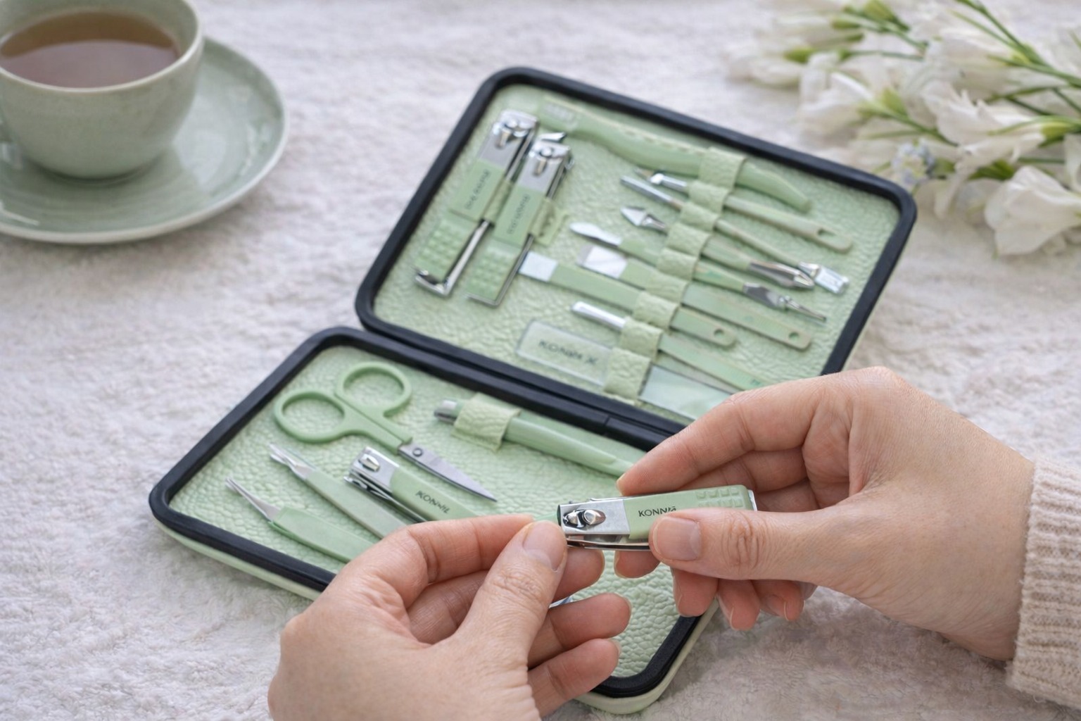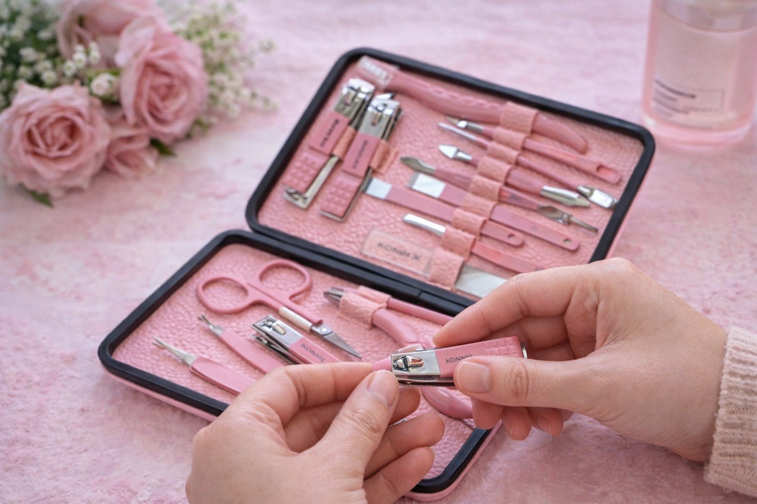所有工具均由優質不銹鋼材質打造,堅固耐用,確保長時間使用不易生銹。內包含剪刀、削皮刀、鑷子、指甲鉗等多種工具,滿足您各種美容和美甲需求。