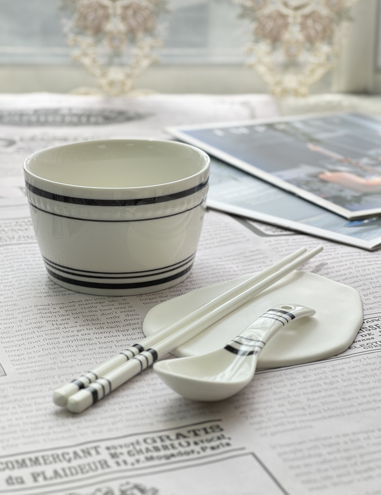 套組有飯碗、筷子、湯匙,滿足整體性與日常用餐的需要。