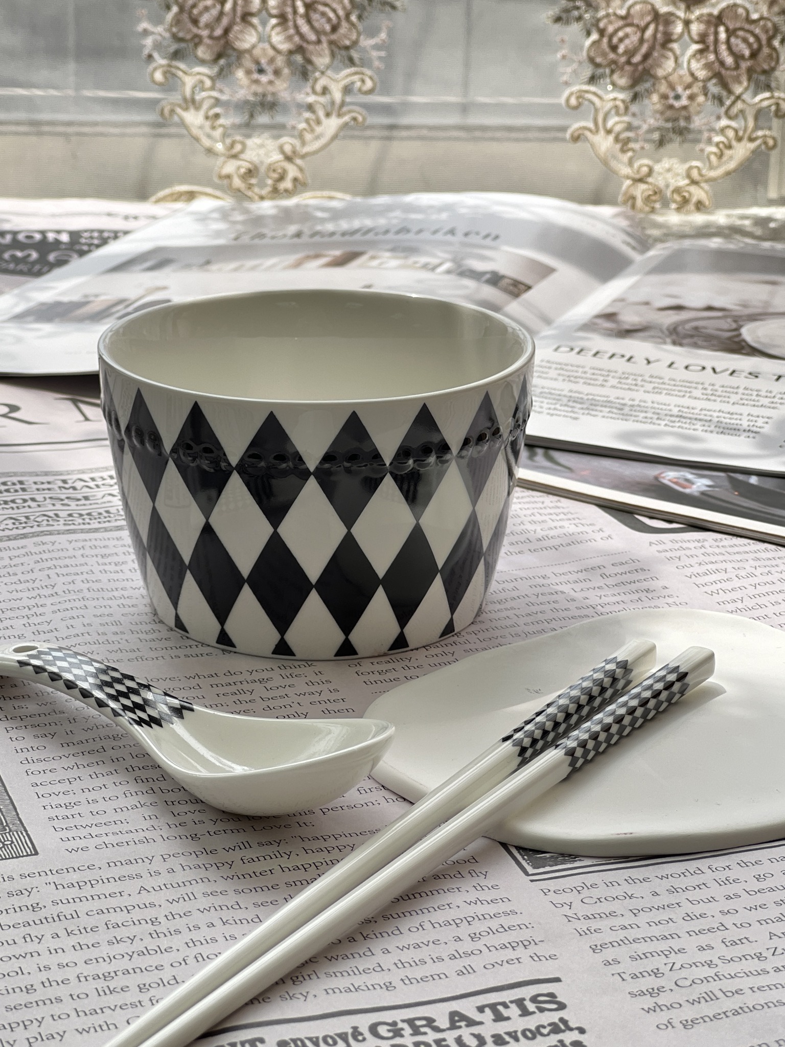 北歐風幾何圖案陶瓷飯碗餐具