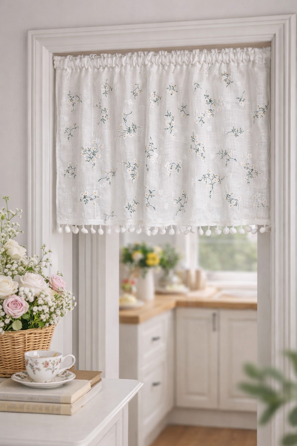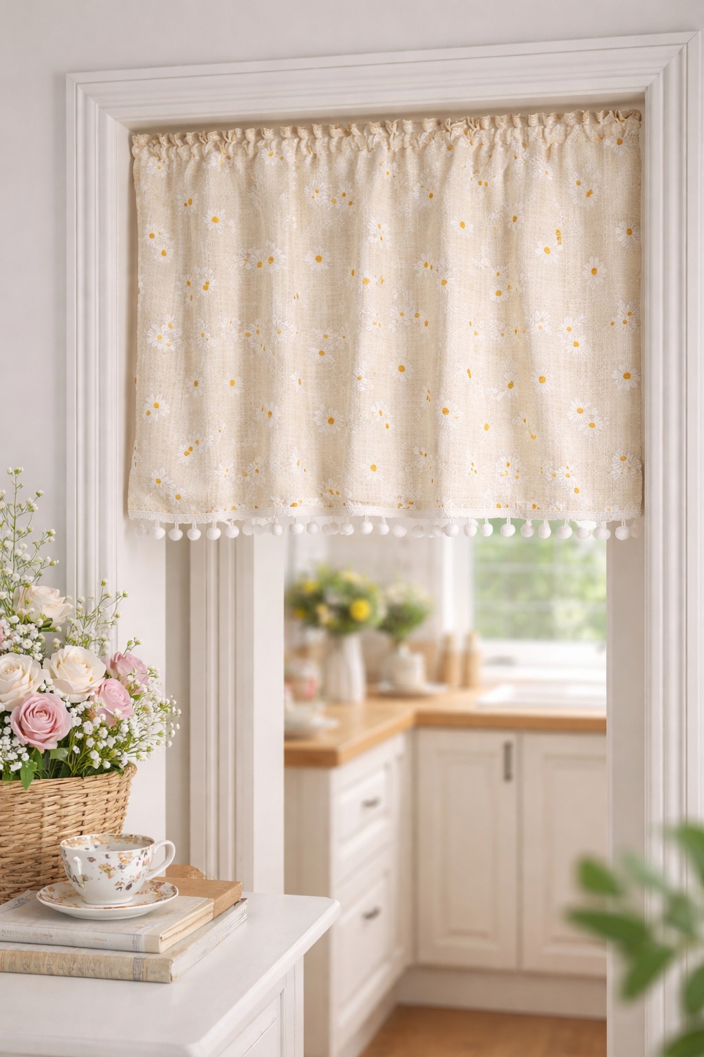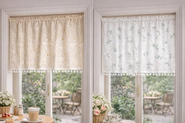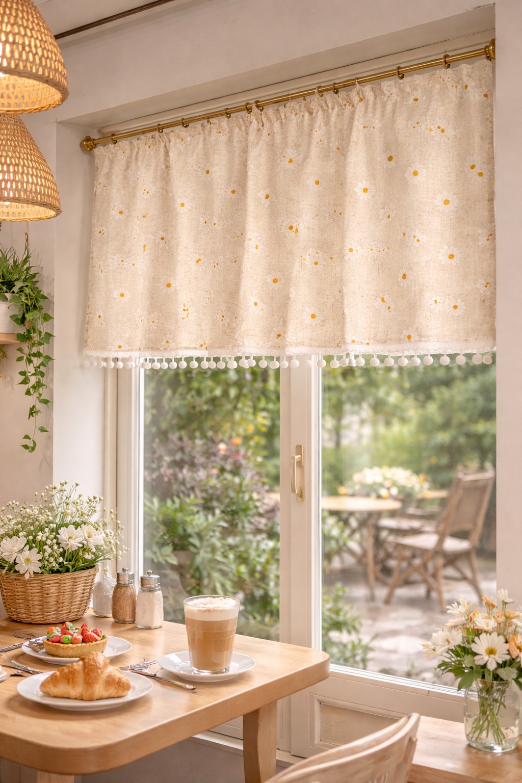 半簾既保留了室內的明亮感,又提供了柔和的遮蔽,讓陽光穿過花朵的空隙,散發出柔和的光影。