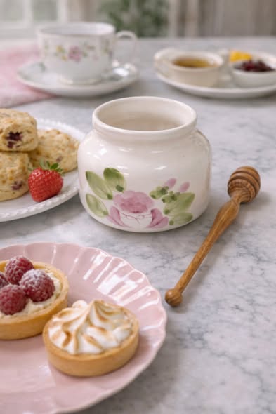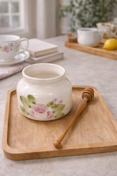 手繪玫瑰陶瓷儲物罐(含蜂蜜棒)