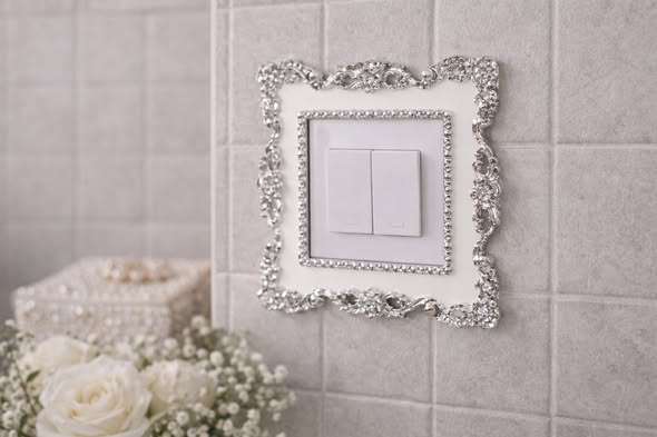 歐式輕奢銀邊玫瑰開關貼