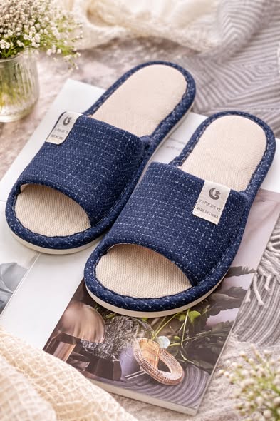 法式亞麻感輕柔居家拖鞋