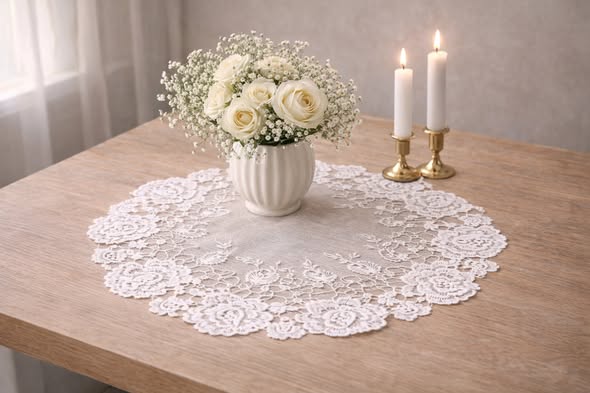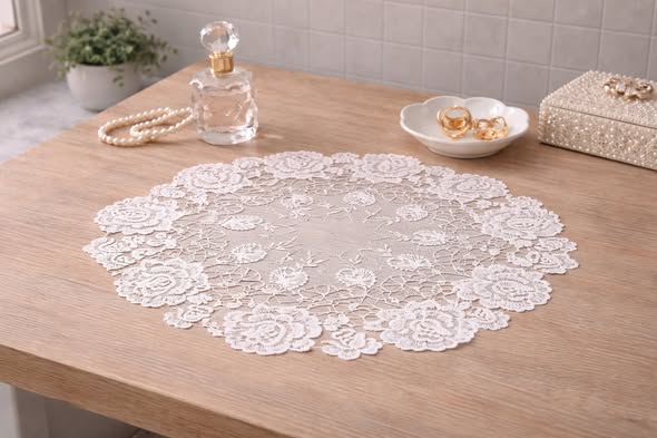 法式圓形小玫瑰蕾絲墊