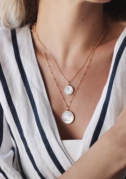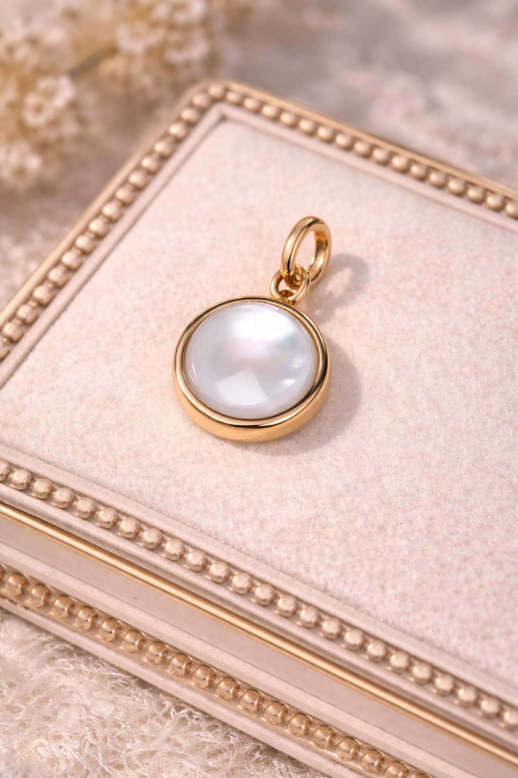 ▪ 圓形月光母貝設計,表面帶自然虹彩光澤,低調卻非常耐看