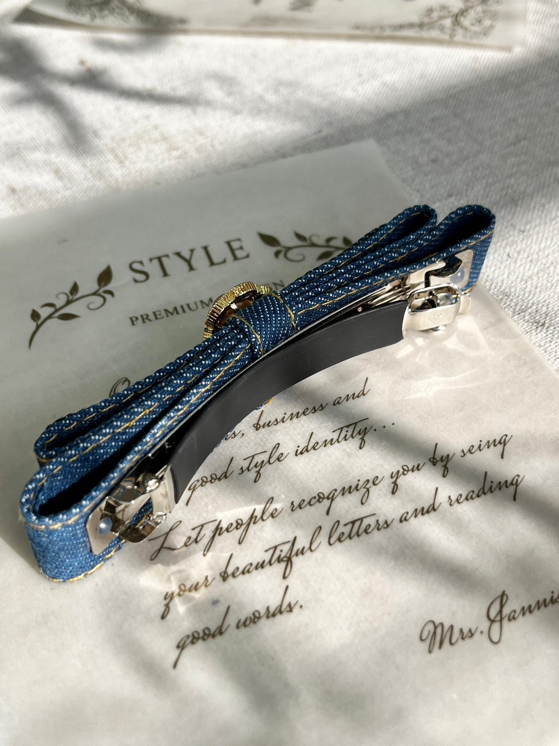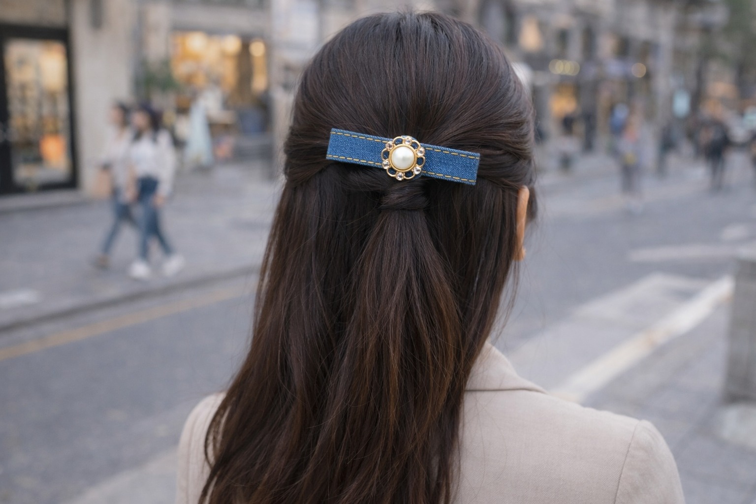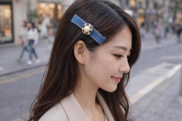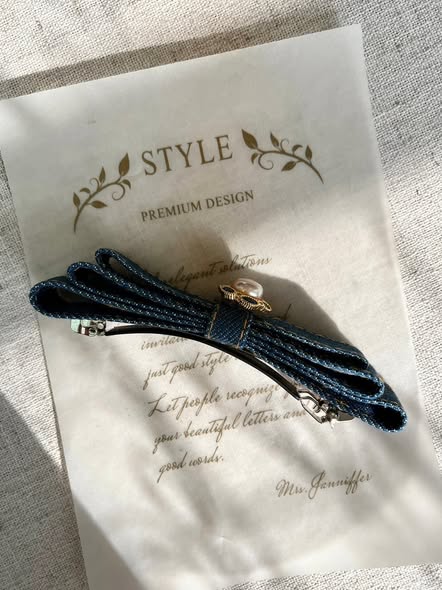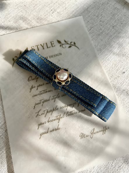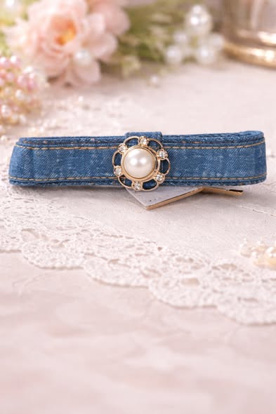 法式珍珠丹寧髮夾