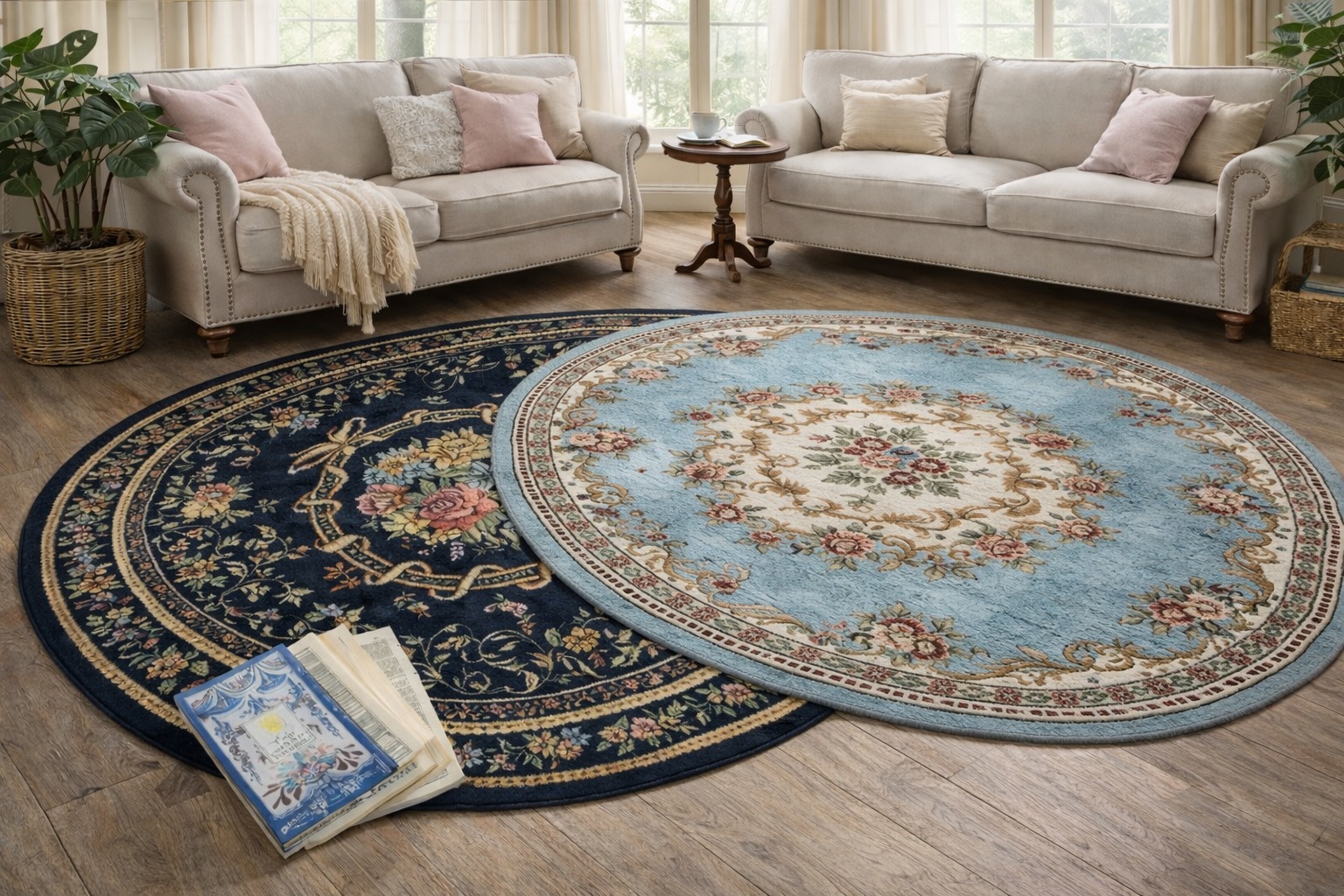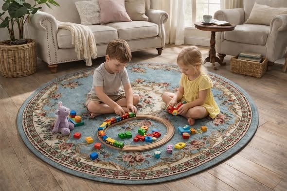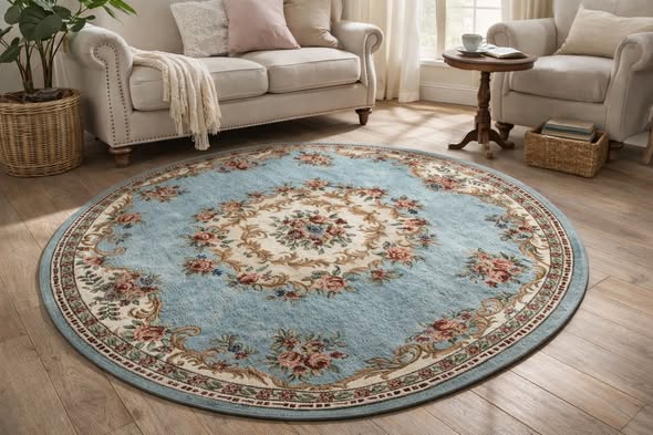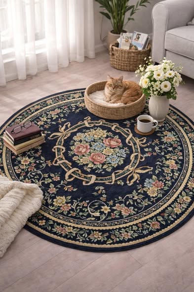 細緻花卉圖騰搭配優雅圓形構圖,營造溫柔復古氛圍,客廳、臥室、兒童遊戲區都百搭。