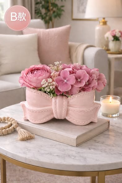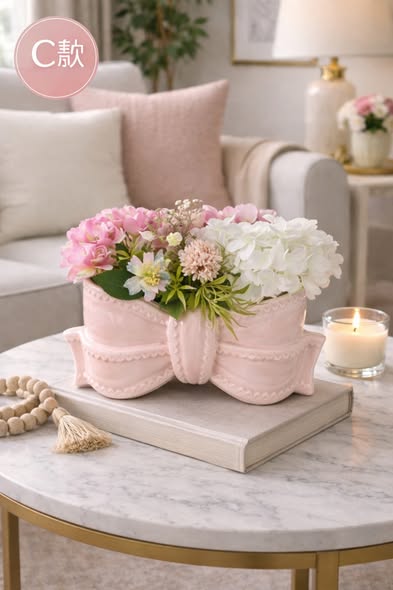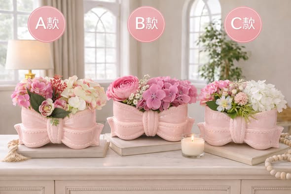 以柔美蝴蝶結為主體,線條圓潤、比例優雅,擺放即成視覺焦點。