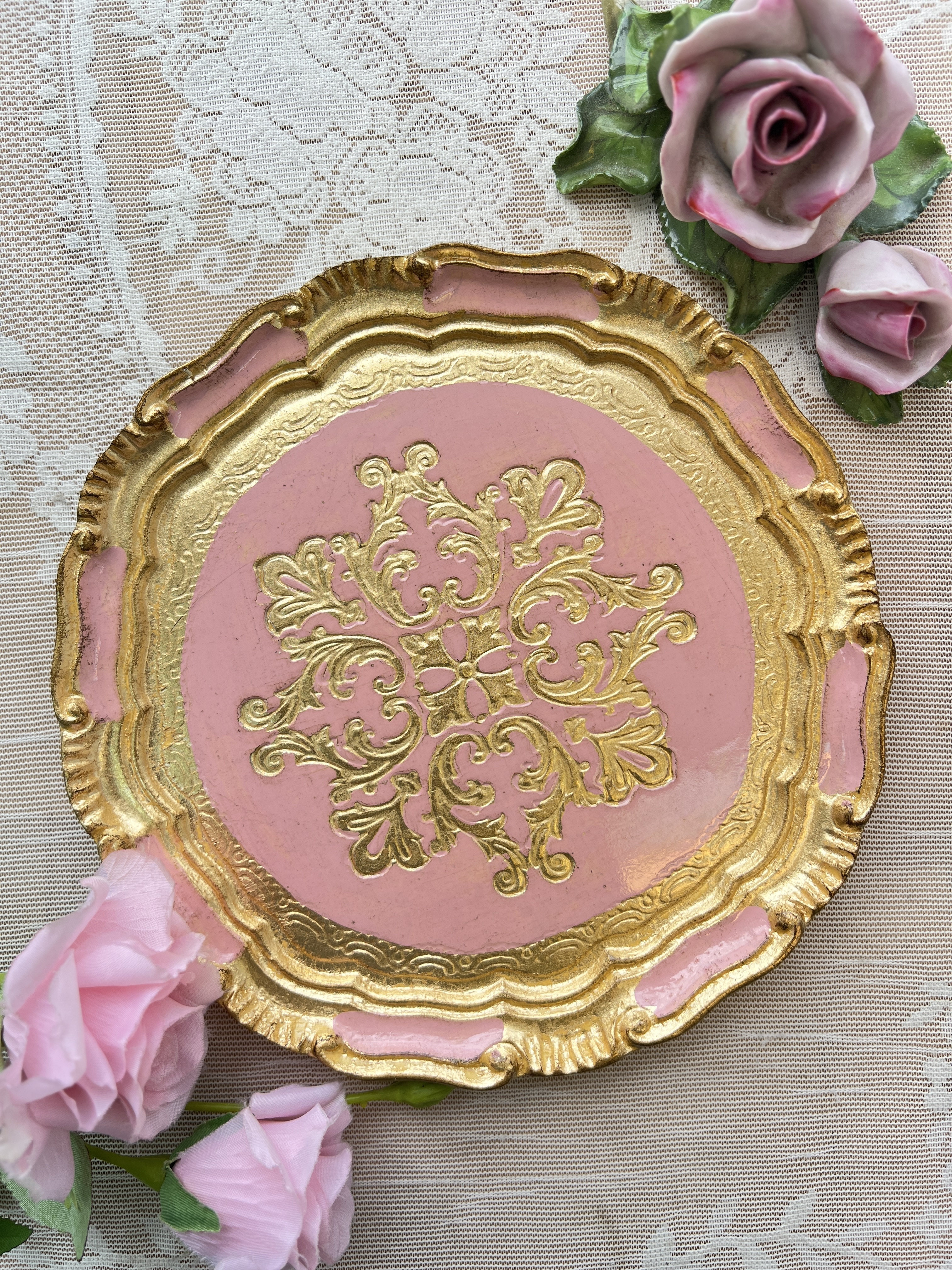 義大利佛羅倫斯手工玫瑰橢圓托盤