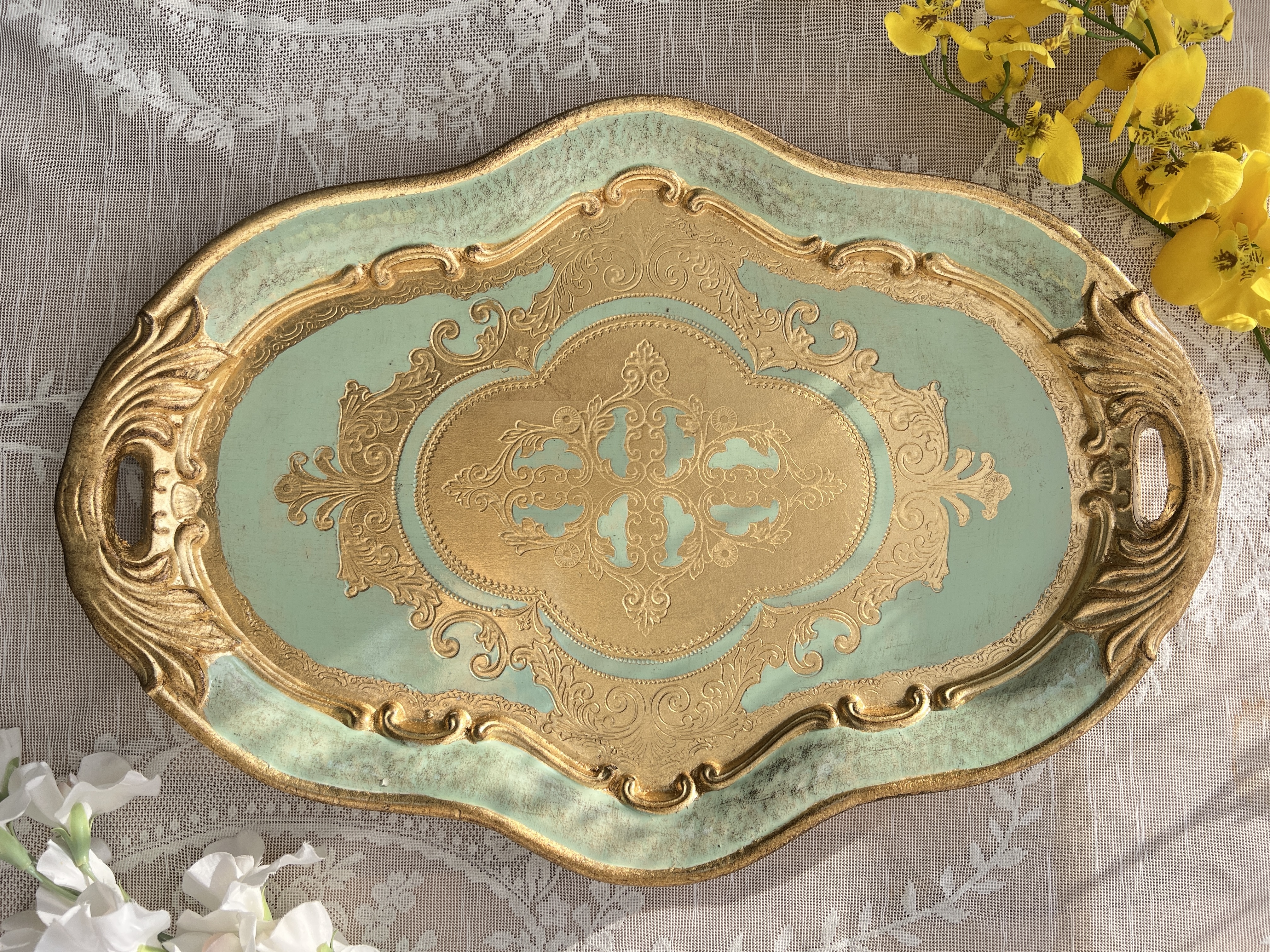 義大利佛羅倫斯手工玫瑰橢圓托盤