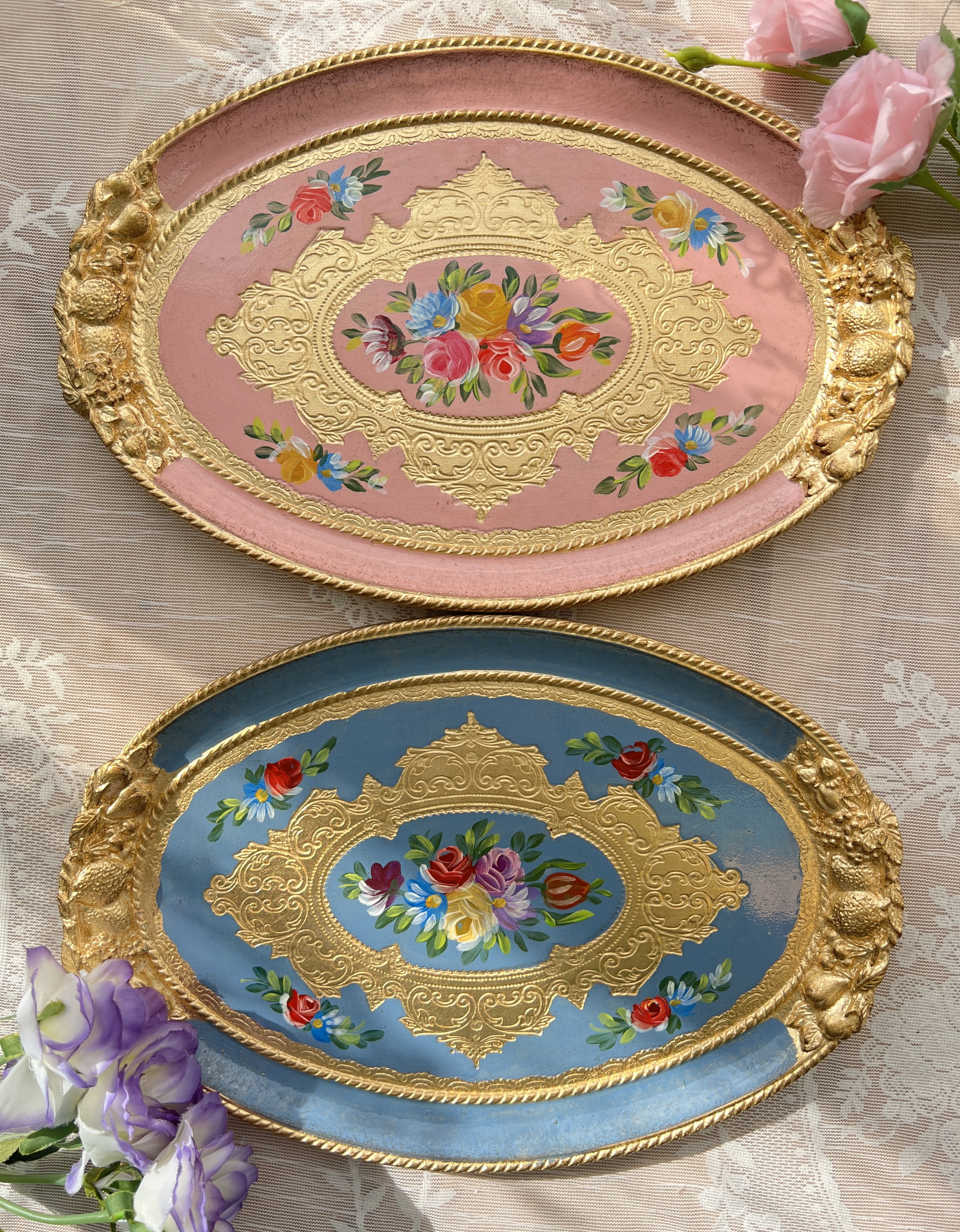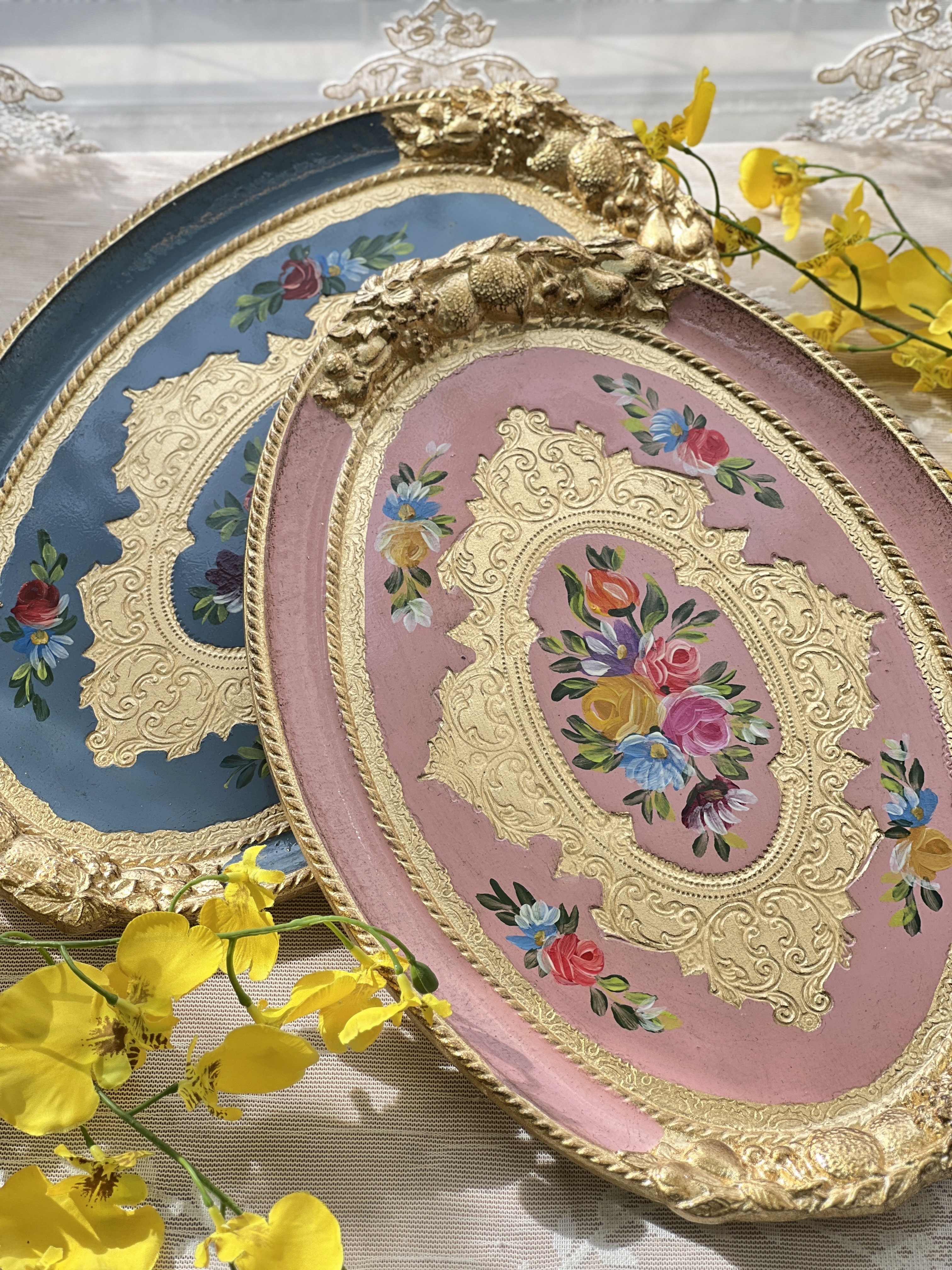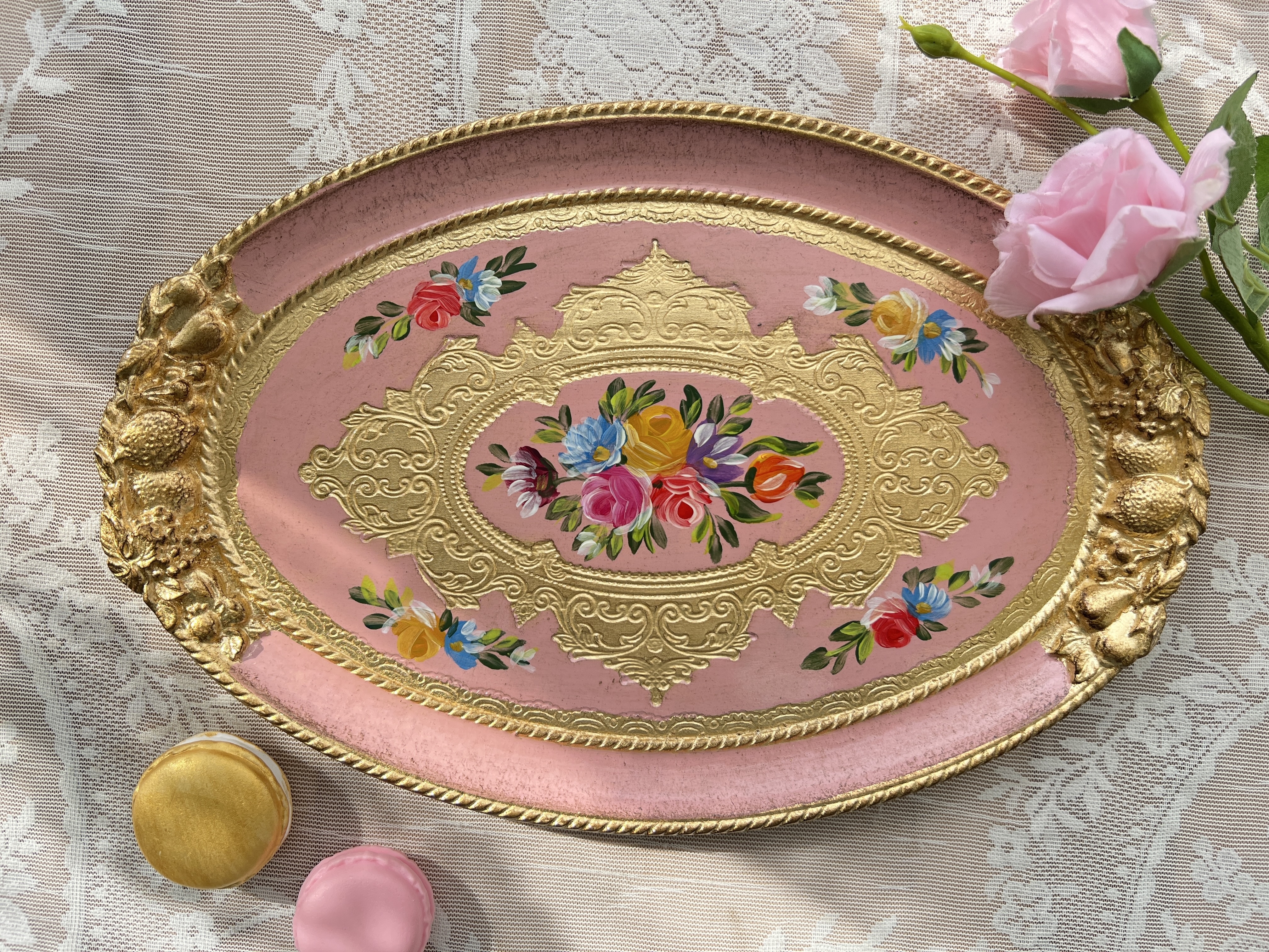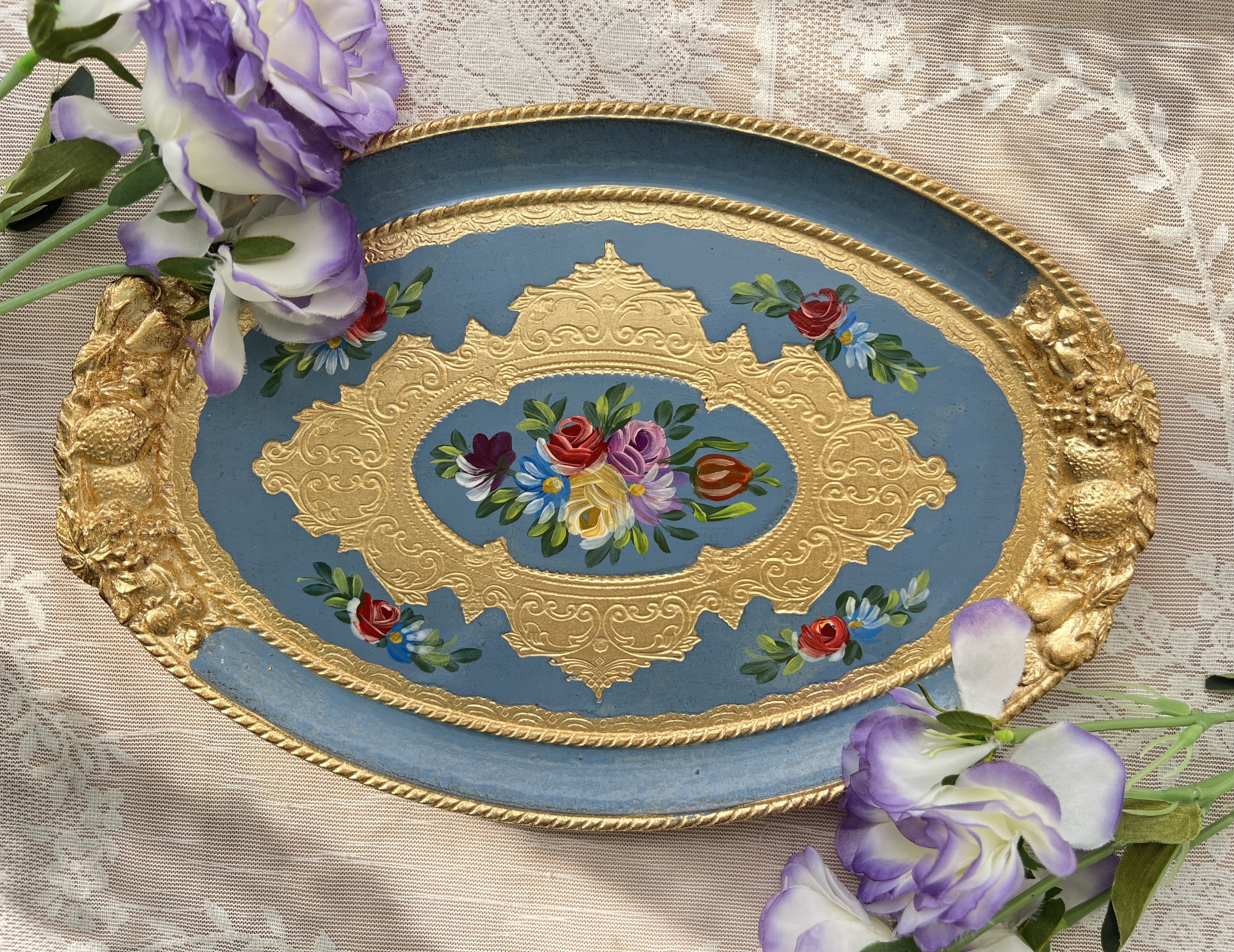 義大利佛羅倫斯手工玫瑰橢圓托盤