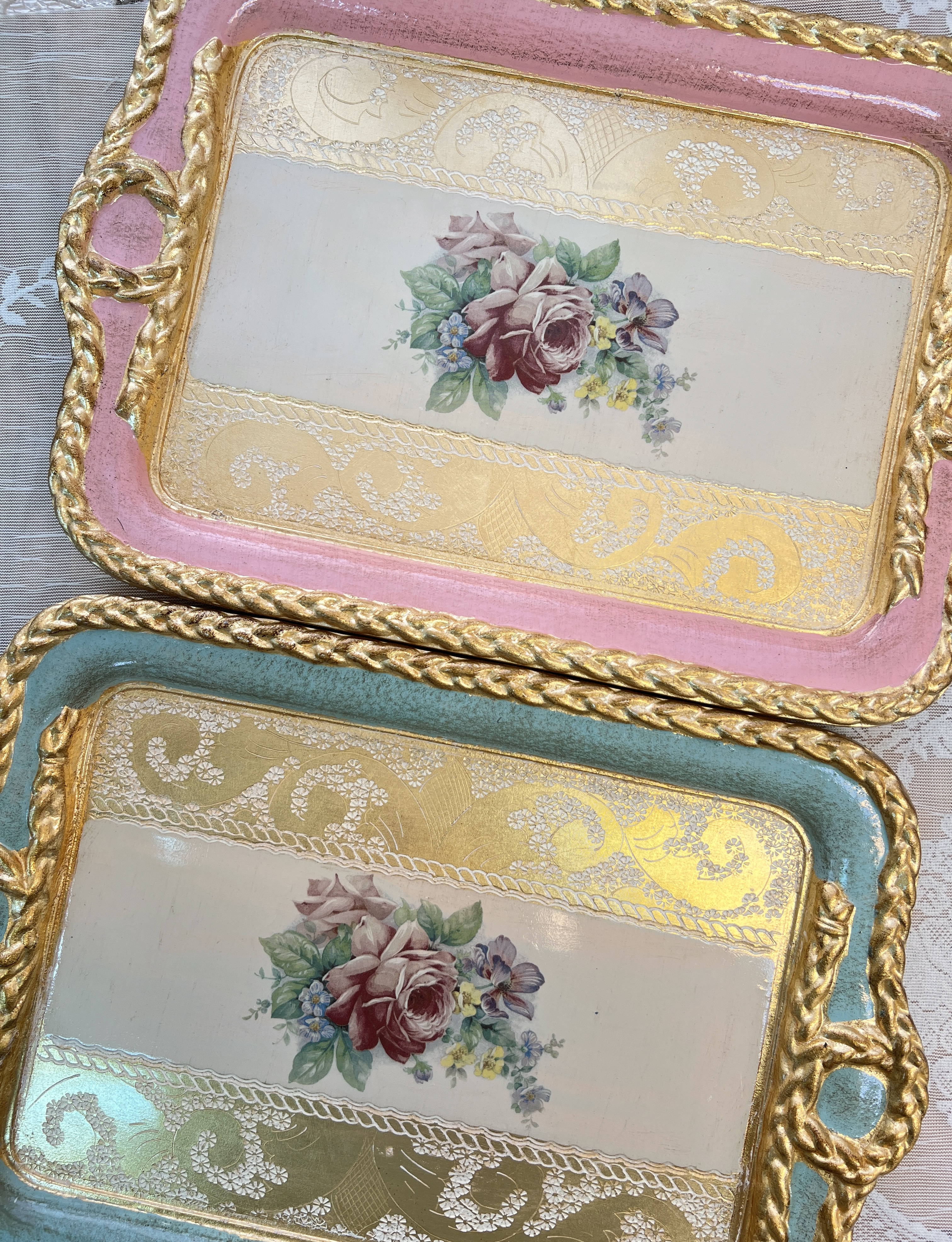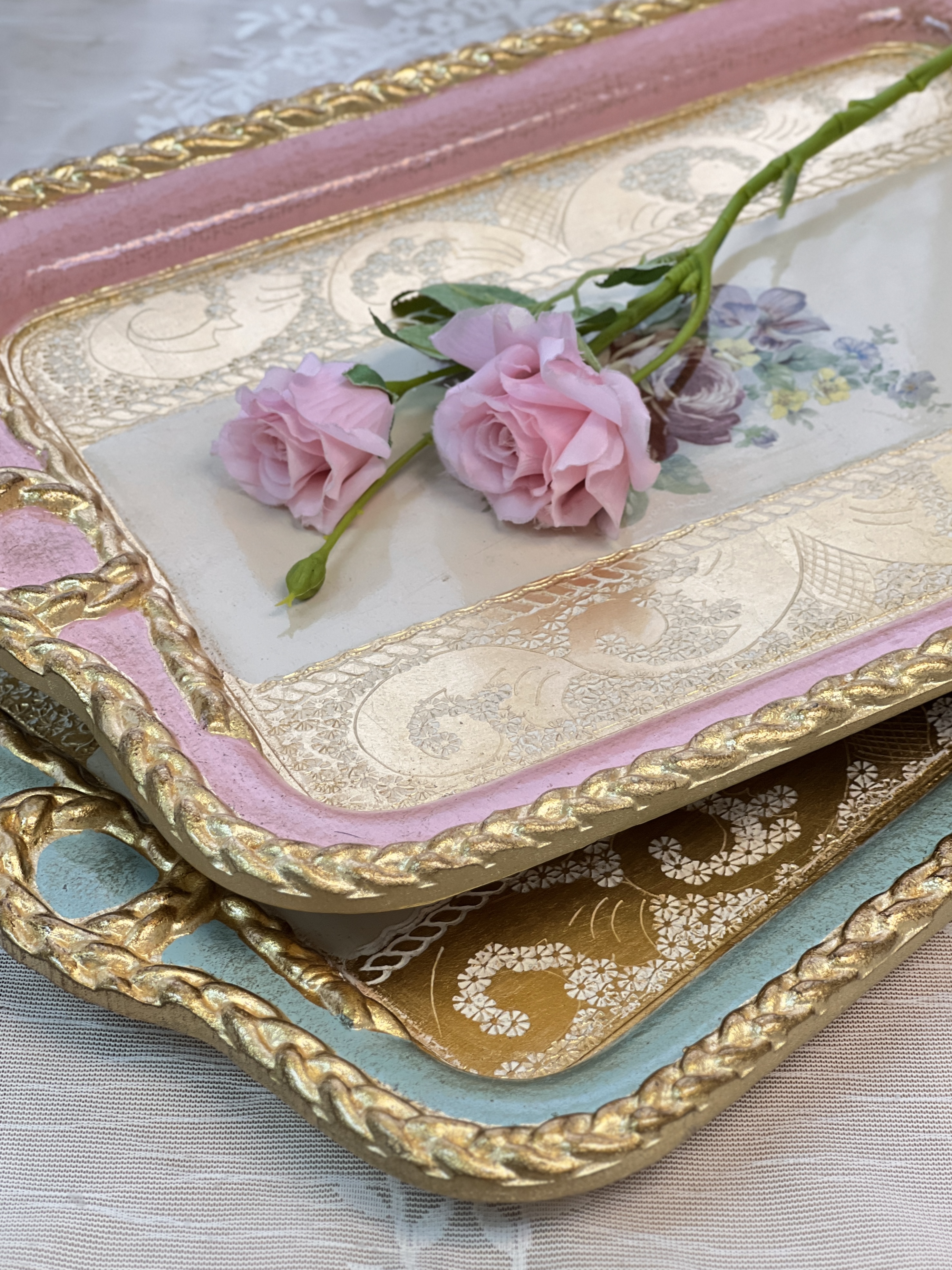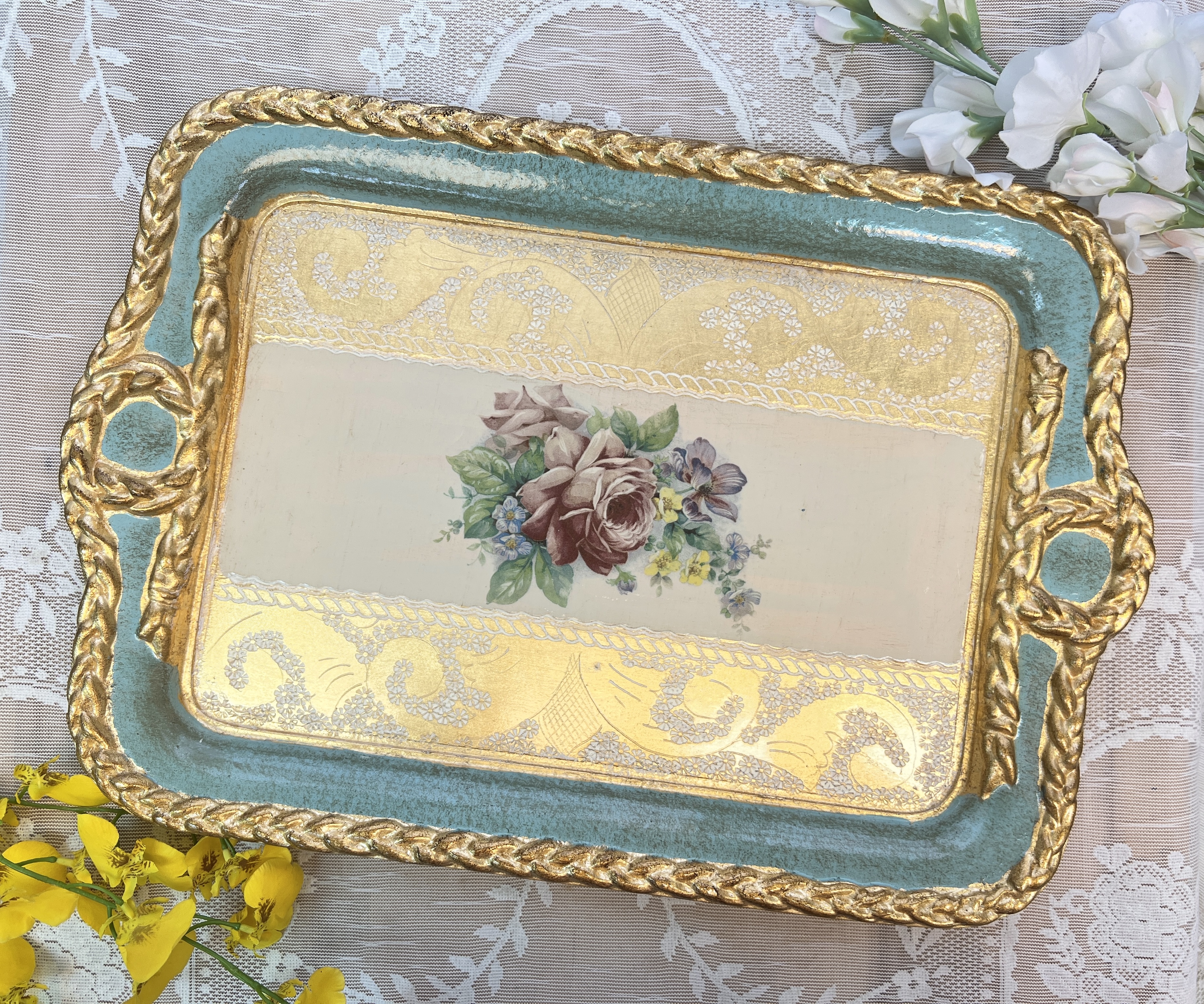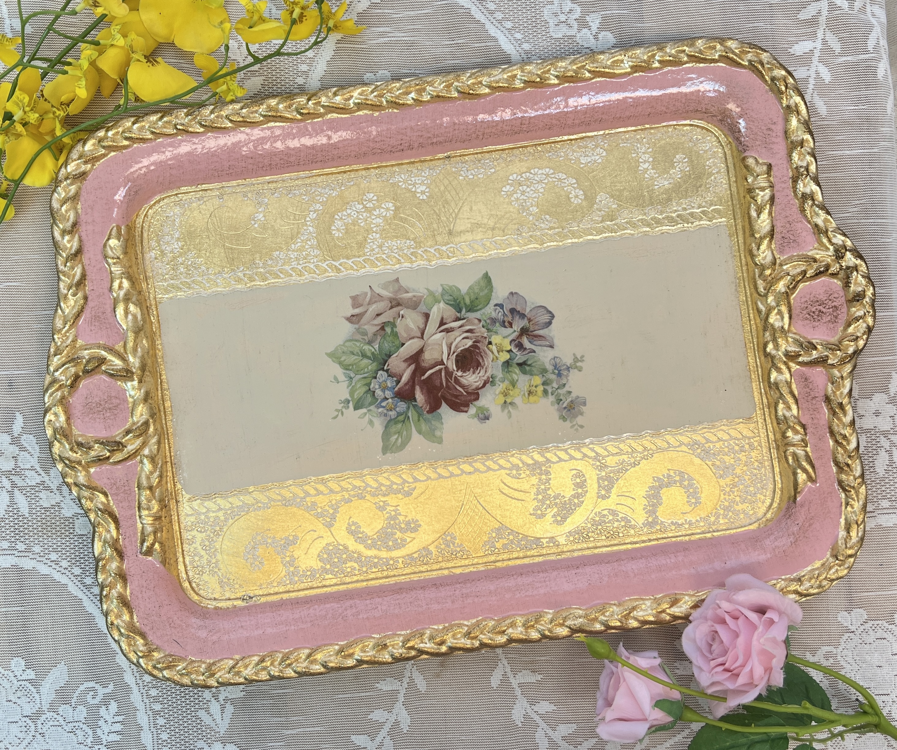義大利佛羅倫斯手工玫瑰長方繩結托盤