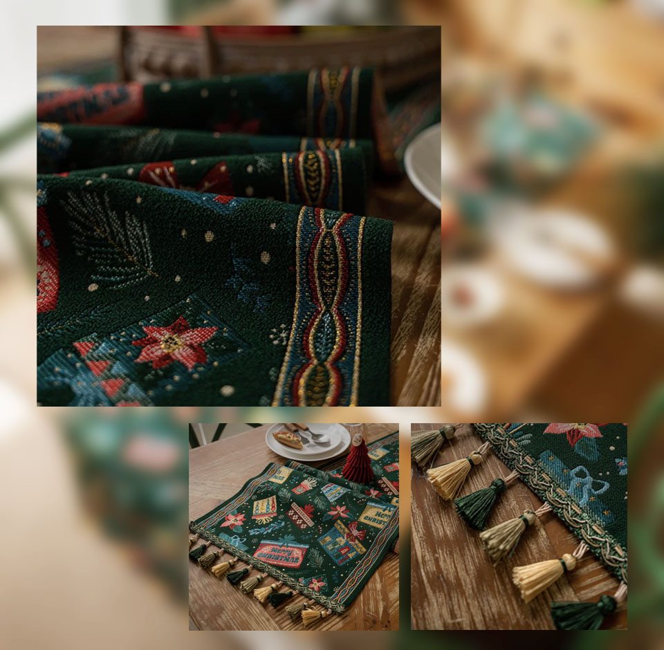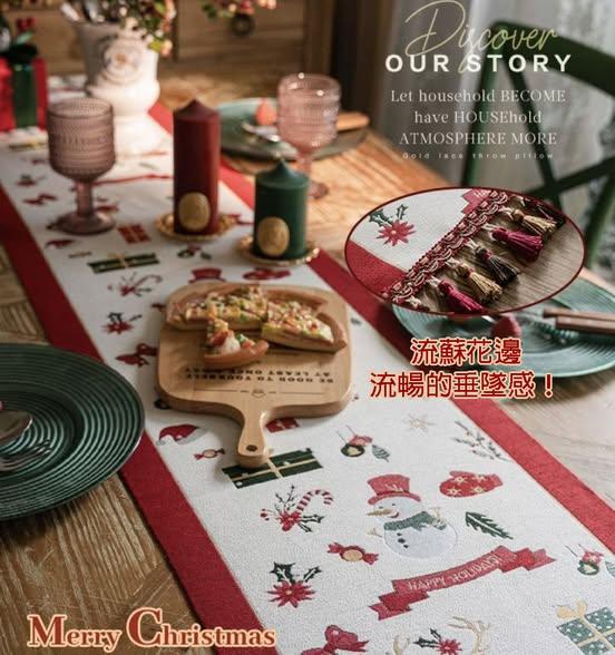 桌旗兩端附有流蘇,為整體設計增添了精緻的細節感,帶來典雅的美式節日風情。