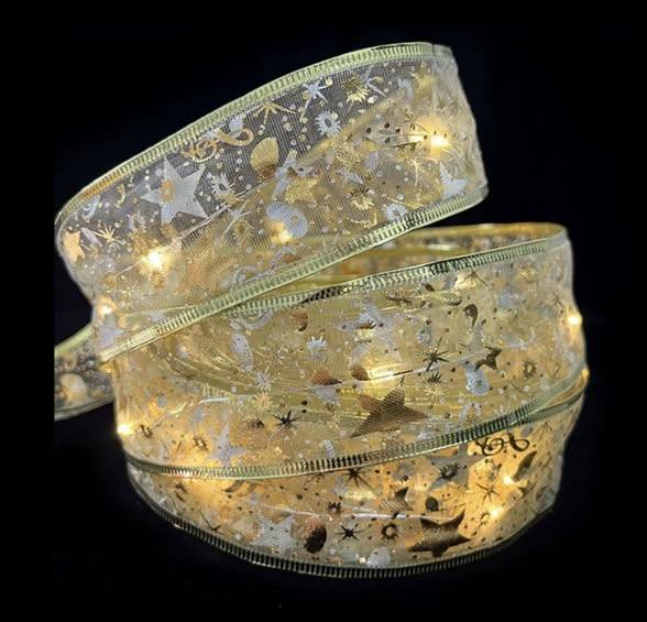 絲帶帶有精美的燙金效果,增添奢華質感,讓裝飾更加耀眼且富有節日氣息。